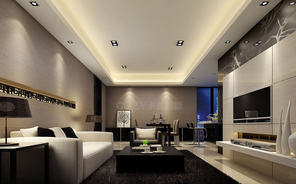 在倡导时尚、舒适生活的今天,自在掌控生活的你,只需舒适地卧在沙发里,弹指之间,客厅里的灯光、窗帘、空调、影音设备等都随着你的需求随意开启、关闭、调节,如果您想观赏影音大片,只需在手机中或场景面板按下“观影模式”,即时开启所有的电器设备均为您观影服务,一切都是如此惬意、简单,却又处处彰显气派与尊贵。